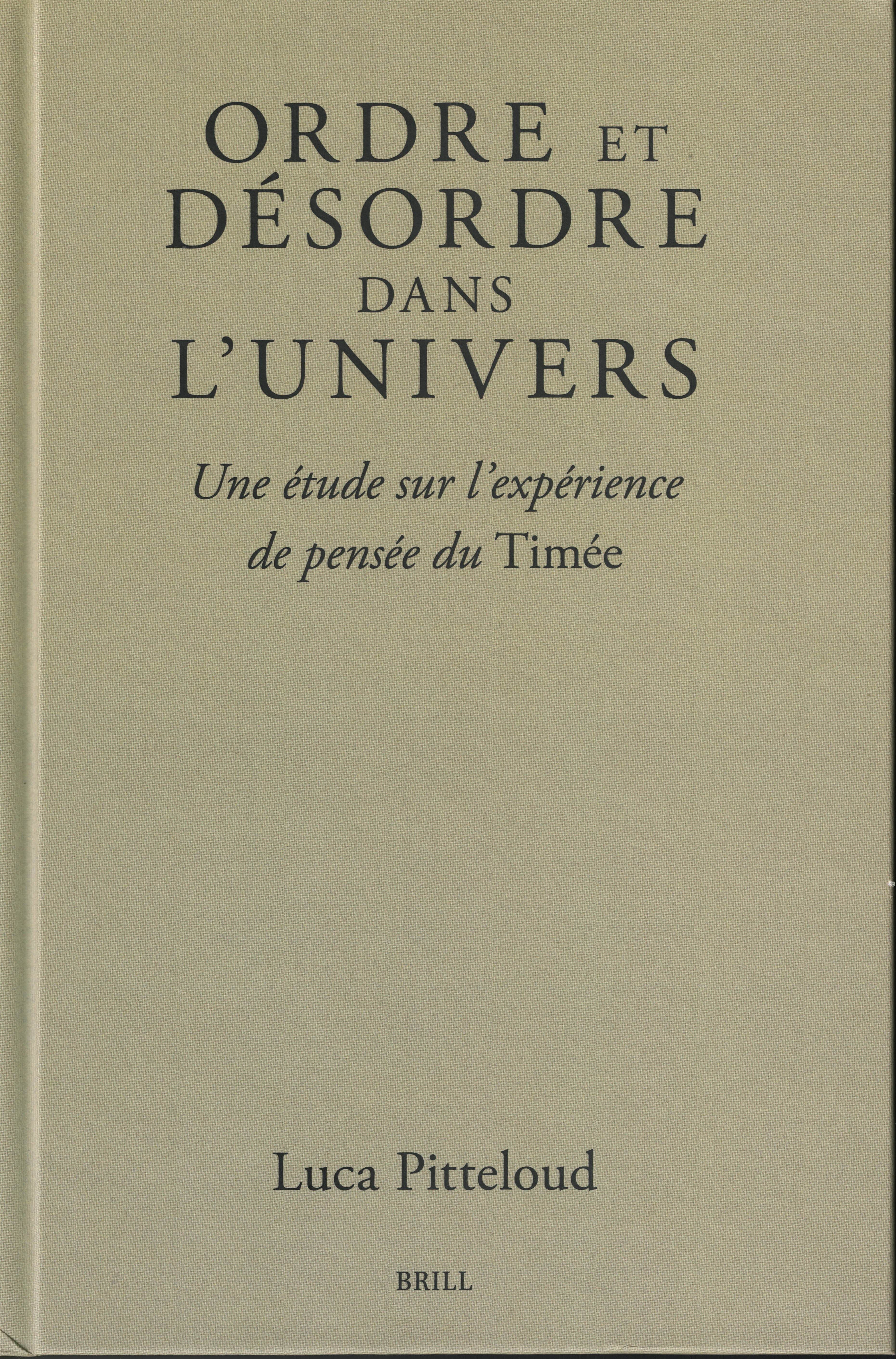 Luca Pitteloud, Ordre et désordre dans l’univers, Une étude sur l’expérience de pensée du Timée, 2024, éditions Brill (thèse d'habilitation relue par studentscoach et publiée).